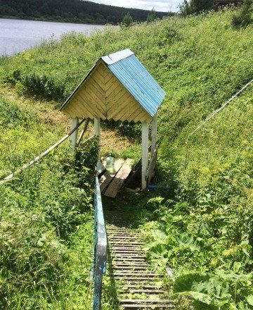От Ревды 20 км, около п. Краснояр. Рядом Мариинское водохранилище, родник. На участке 2 теплицы, кусты смородины, малины, крыжовника и жимолости. Есть скважина. На первом этаже сауна и душ. В 20 км святой источник Платонида.